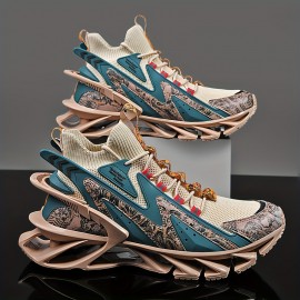 Men's Color Block Trendy Running Shoes, Outdoor Shock Absorption Athletic Shoes, Men's Sneakers, Spring And Summer